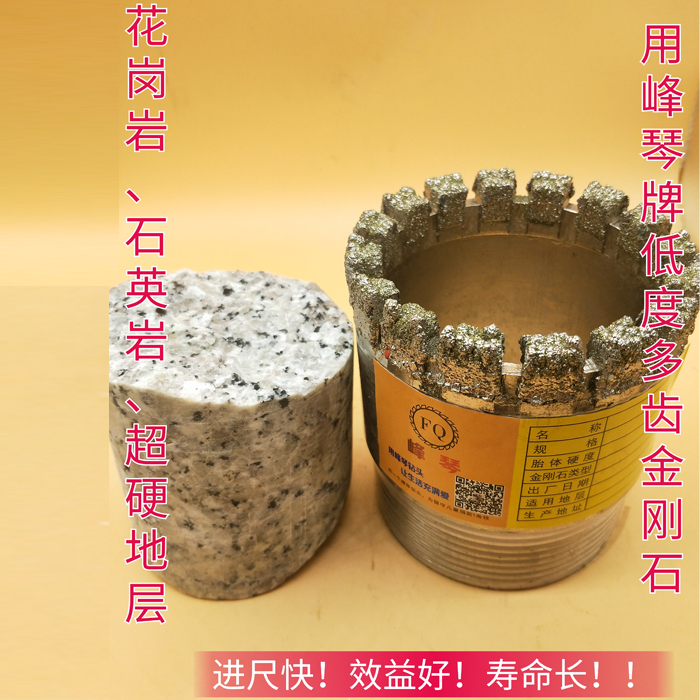 电镀多齿进口金刚石采用进口金刚砂材质,镀了27层足量足料进口金刚砂,特殊小齿牙设计,75型号12个齿牙,91型号14个齿牙,齿牙多,水口多不堵钻不堵水,打超硬岩石进尺更快速!胎体采用优质45号钢,耐敲耐磨,更好的延长钻头的使用寿命!澳门顾客臧先生做海上孔,打超硬花岗岩,用多家厂家钻头进尺都不理想,经朋友介绍购买峰琴牌电镀多齿进口金刚石,91型号每小时进尺三米多!甲方非常满意!钻机每天日进斗金!已在20年购买几百个!听说已经把比亚迪换成宝马了!更多现实案例,或需针对地层介绍合适的钻头,欢迎交友咨询:峰琴公司销售部经理---李珊珊18320758688